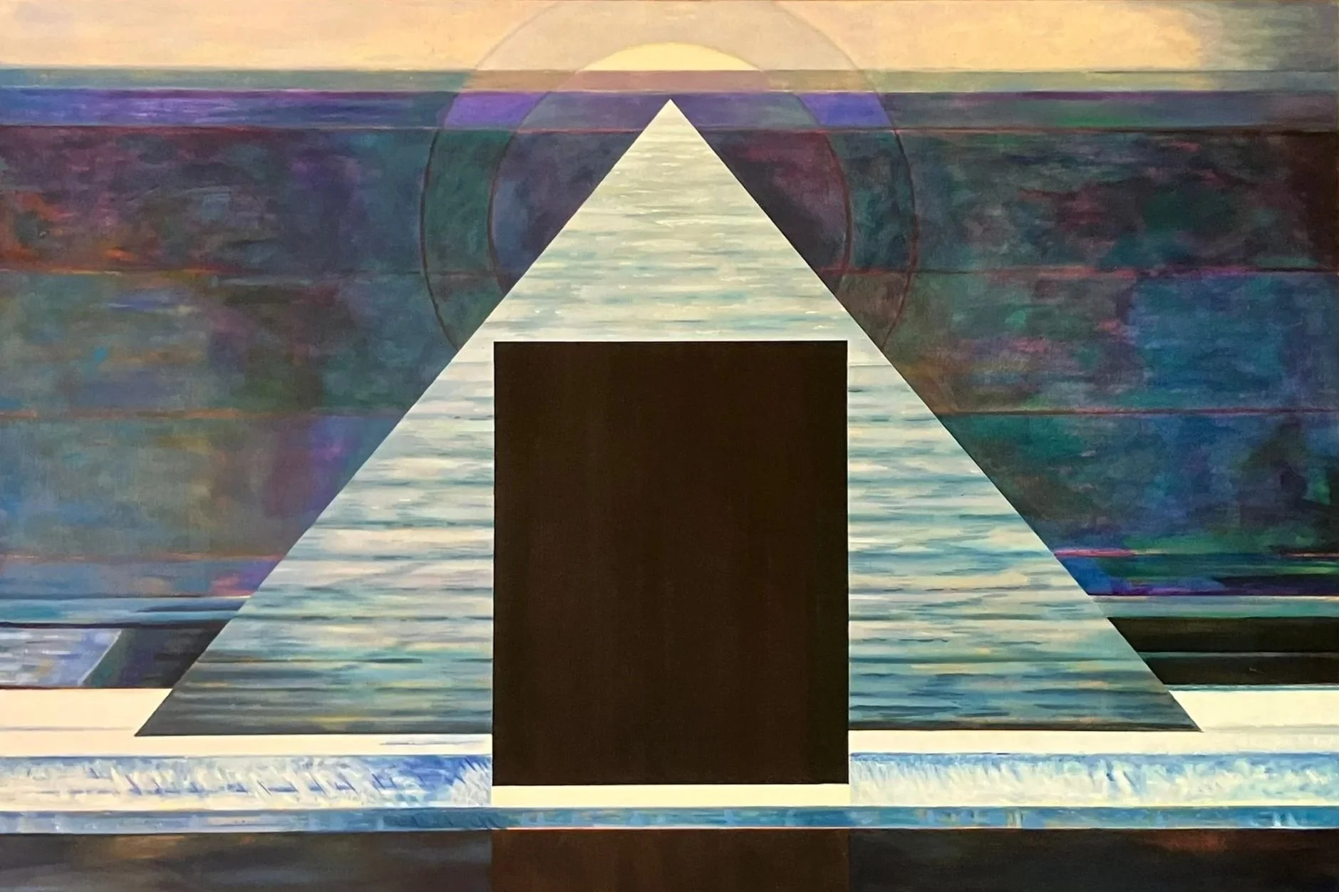 His pyramids take this further still. Painted in water but built of stone. Standing on sky instead of earth. The most solid things rendered fluid; the most fleeting rendered permanent. These are not visual tricks but serious philosophical statements, reflecting his deep engagement with physics and cosmology, the idea, familiar to scientists and mystics alike, that reality is not fixed but in constant flux, a perpetual dance between things and non-things.