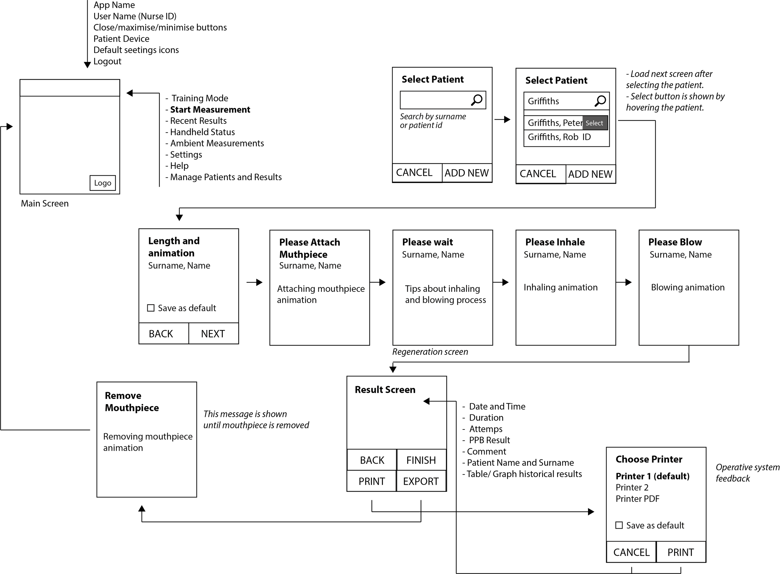 The solution we designed and tested was a digital device that the user could hold in their hands, inhale and blow into, to interact with the app on the doctor’s computer or tablet.