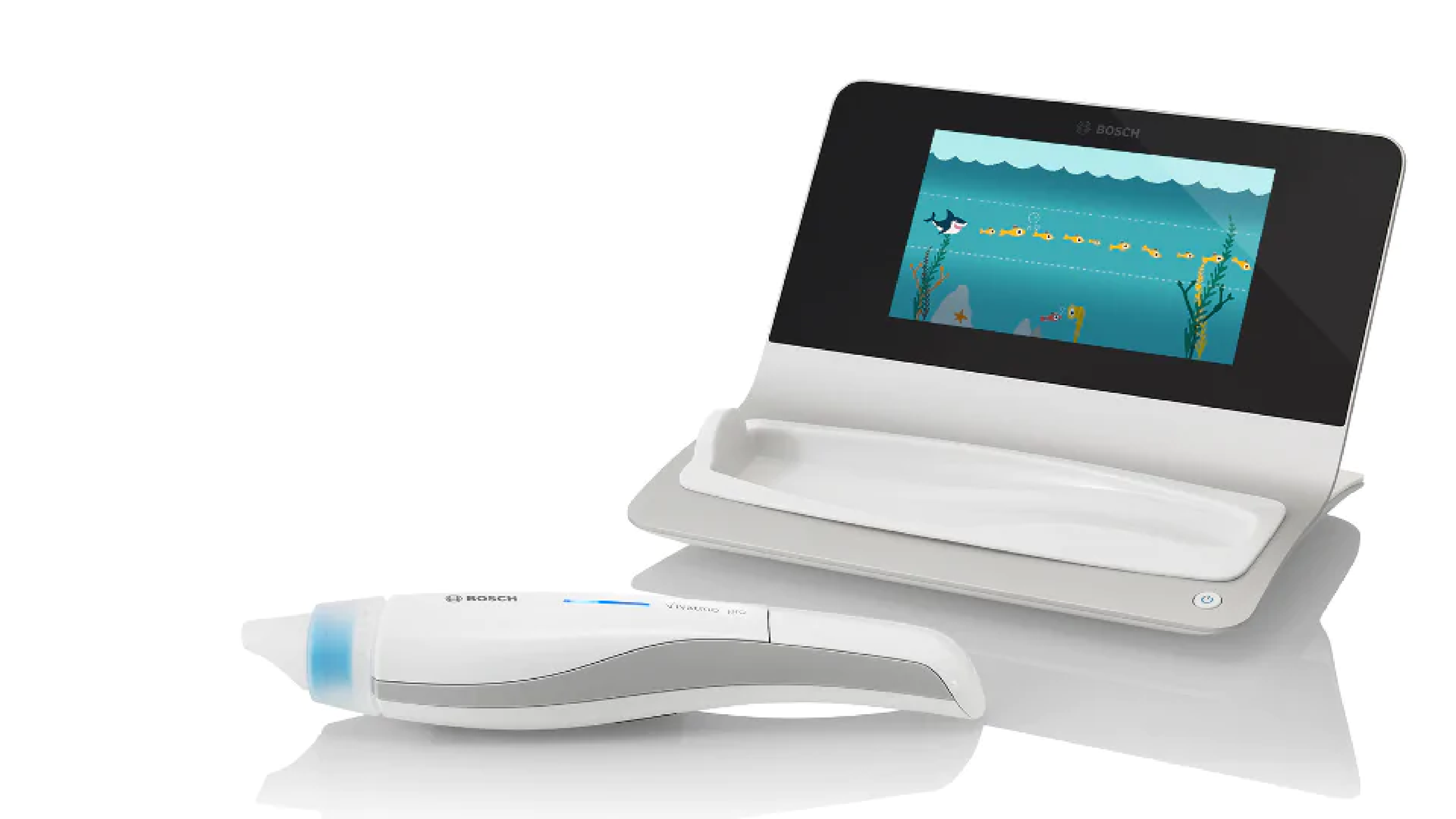 For that, I designed and tested a game where a shark would eat fish when a kid blew into the inhaler. If they blew with too much intensity, the shark would be caught by a net from the top. If they blew too softly, the shark would be eaten by an orca. When we tested it with children, they loved it and wanted to stay and keep playing when the test finished. This practice helped find the correct way to blow into the device for a correct test result. As part of this project, I designed the desktop app, the game, and the interaction with lights on the small digital inhaler.